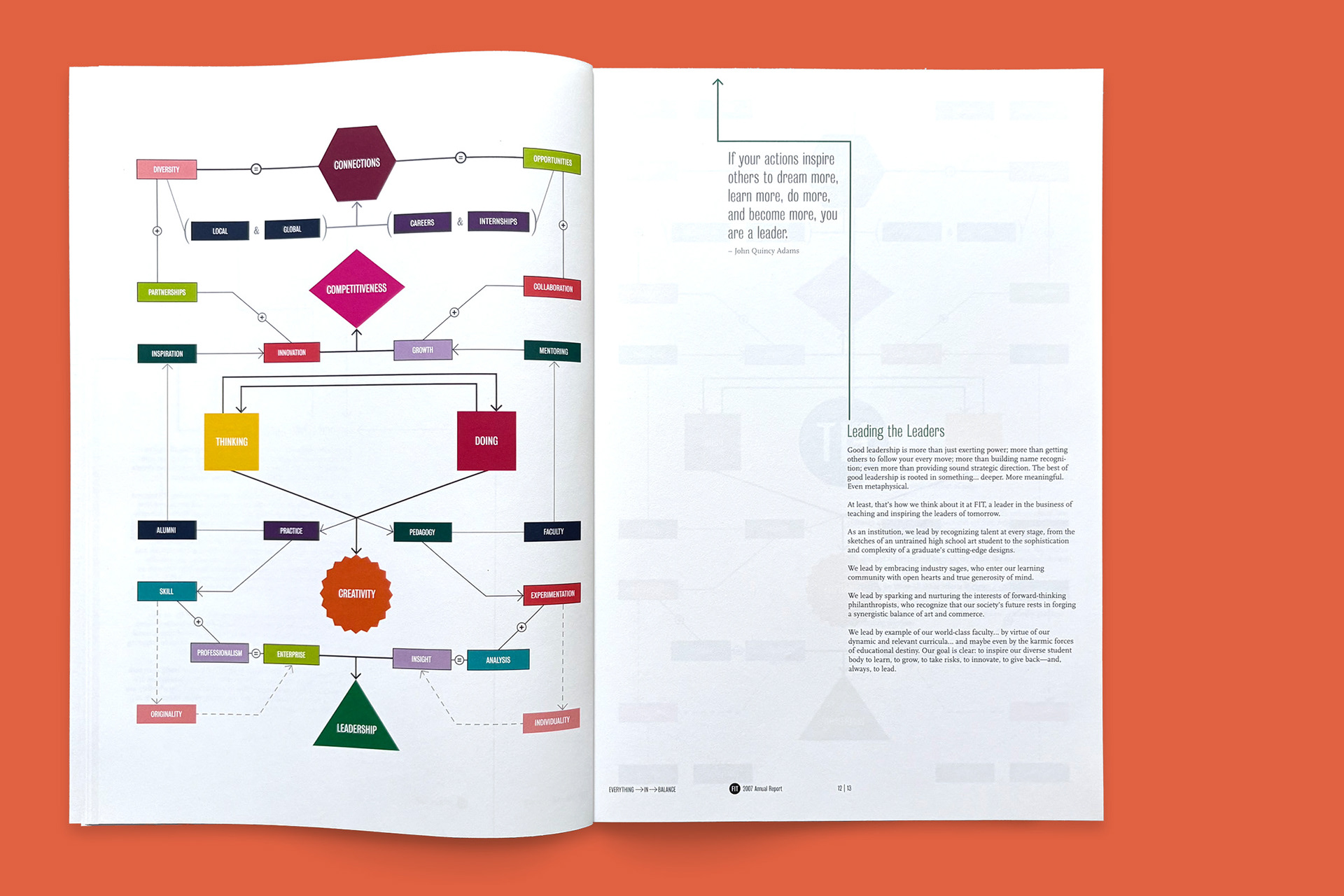 During my time at Pentagram I worked on an array of projects for their longstanding client, The Fashion Institute of Technology, a SUNY school. My experience with them began with multiple small signage projects on campus and grew into a role designing some of their key communications. This annual report was developed with a theme of balance, and was built around a playful flowchart that conveyed FIT’s varied, positive attributes. The arrow graphics of the flowchart were also brought into dynamic arrangements with the type, extending the visual storytelling throughout the document. That it could all be both complex and harmonious made it perfectly FIT.