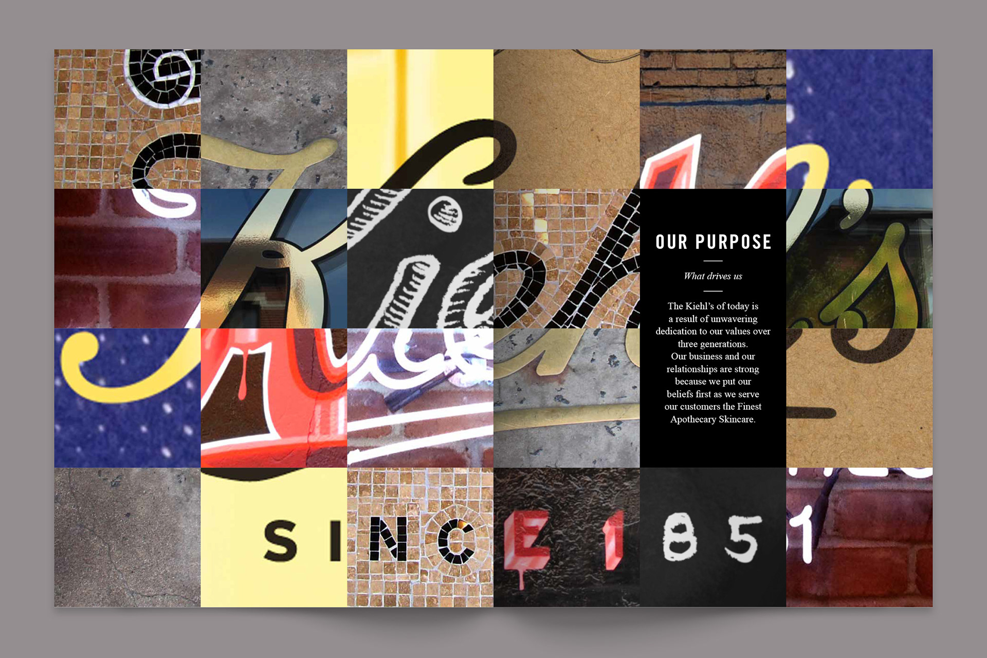 The beauty and skincare brand Kiehl’s that is familiar to many consumers today was established in the 1960s, but the brand’s legacy goes back to a Lower Manhattan pharmacy opened in 1851. That rich, homespun history informs everything their brand is, but it had never been synthesized into a comprehensive form. So with stores opening around the globe and no way of replicating their core essence and characteristics, the brand was becoming diluted and inconsistent for shoppers.