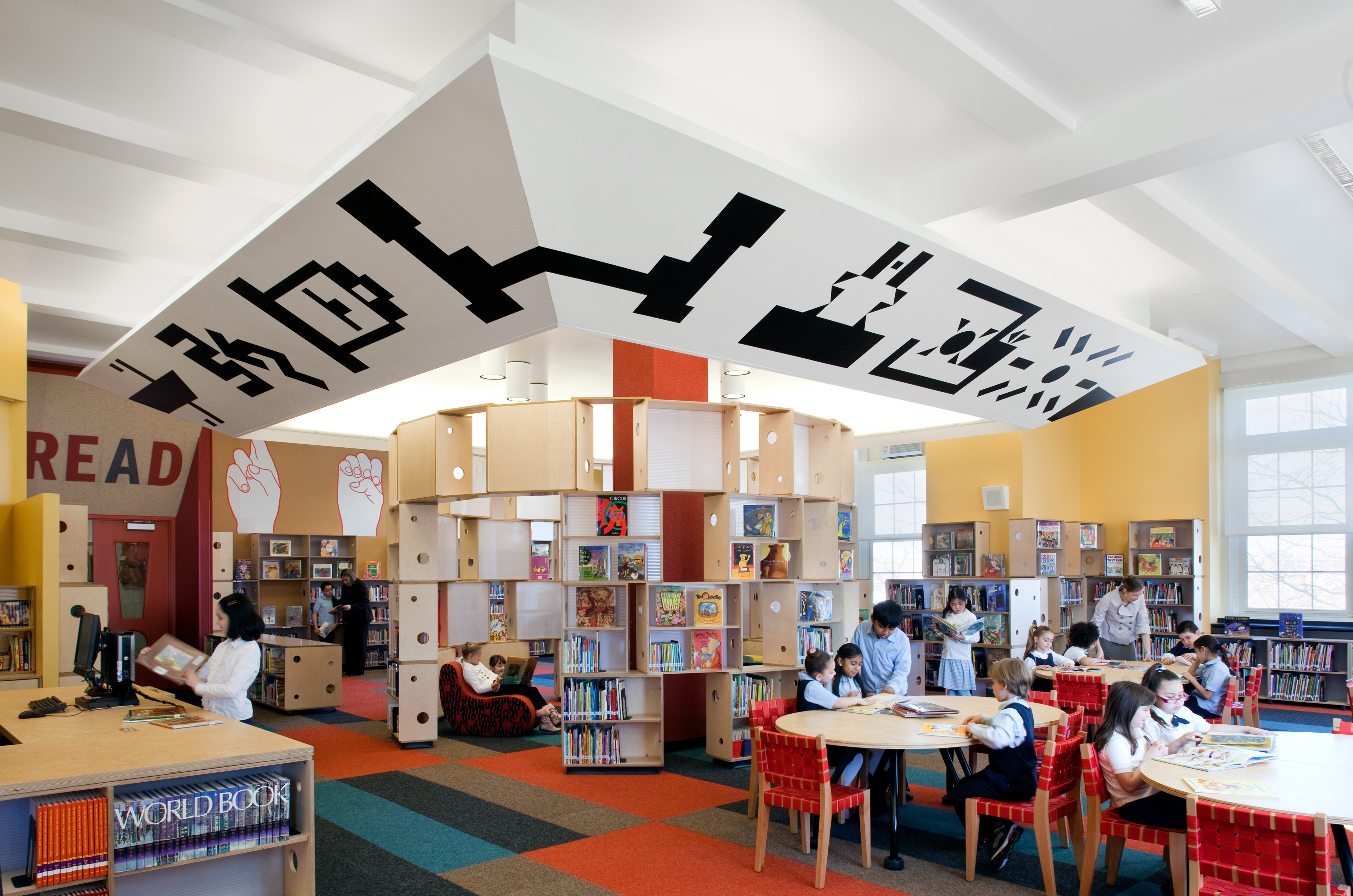 The L!brary Initiative, a poverty-fighting program of the Robin Hood Foundation, is responsible for building dozens of libraries in under-funded New York City public schools. The spaces were designed by many up-and-coming and established architects. In my role as designer at Pentagram, I was responsible for most of the graphics and signs that finished the spaces.